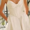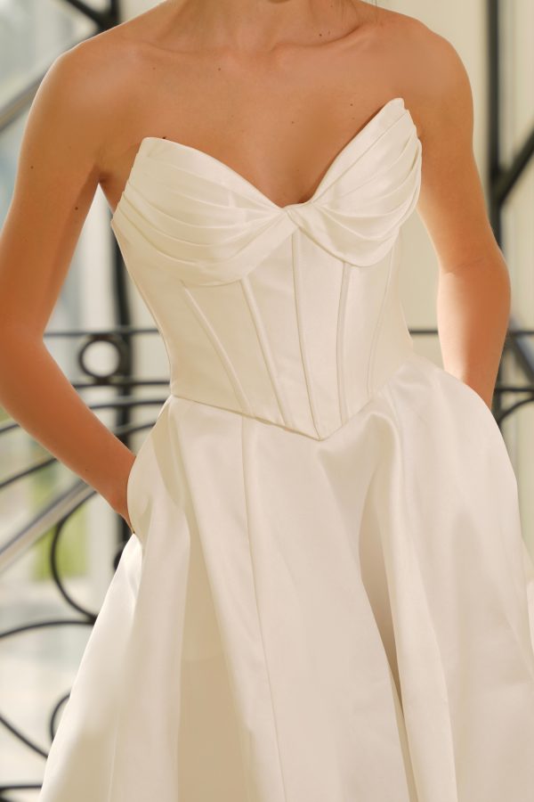 LONG STRAPLESS STRUCTURED CORSET BODICE basque waist MIKADO BRIDAL Wedding GOWN | Laurenne -TE704